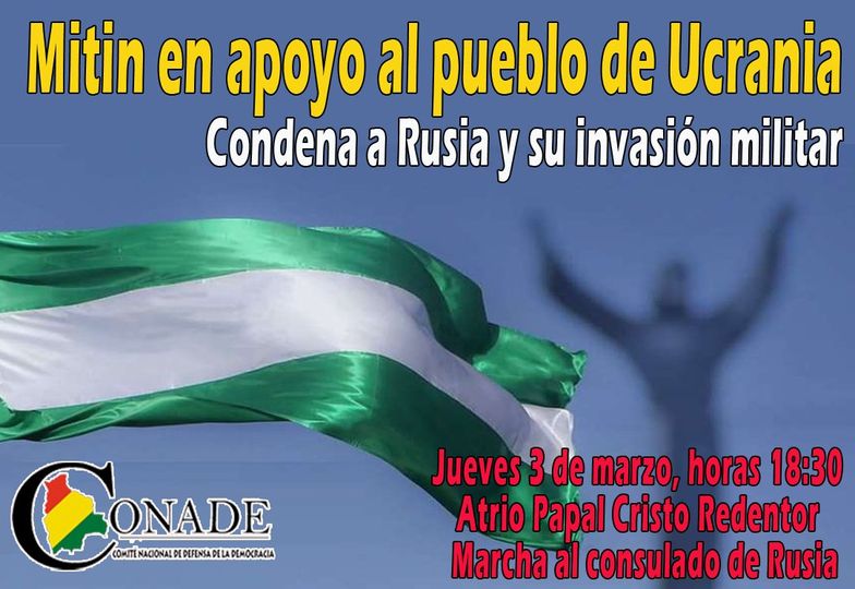 El Comité Nacional de Defensa de la Democracia (Conade) organiza para el jueves 3 de marzo un mitin en respaldo a Ucrania.