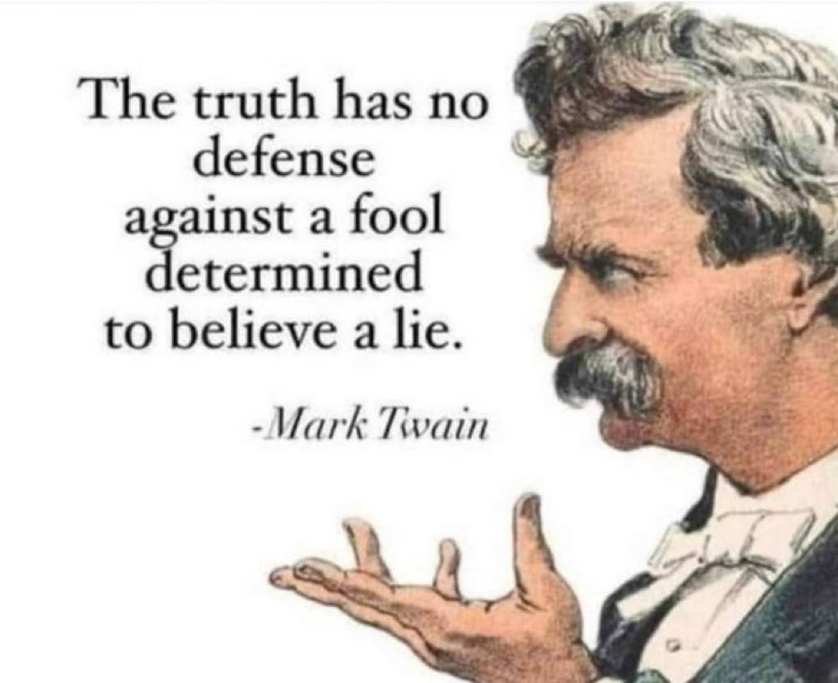Qué grande Mark Twain. No hay defensa de la verdad frente a un tonto con la determinación de creer una mentira. https://t.co/dwqKNLHAFD