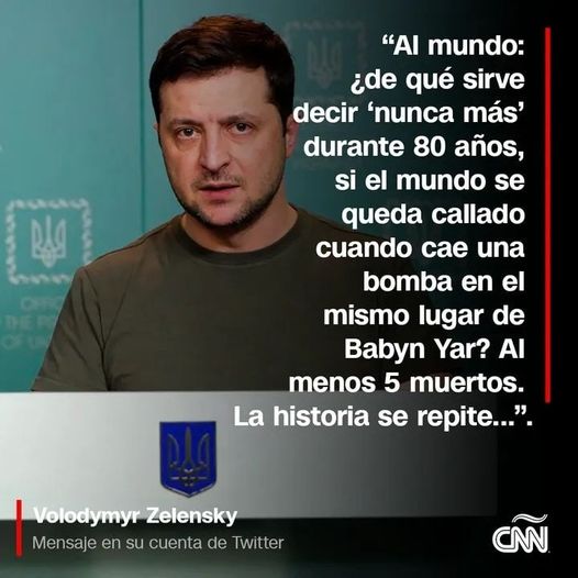 #Ucrania El presidente de Ucrania, Volodymyr Zelensky, envió este martes otro fuerte mensaje al mundo al anunciar la caída una bomba rusa en Babyn Yar, una zona en las afueras de Kyiv, donde, según el mandatario, murieron al menos cinco personas. 🇺🇦🇧🇴