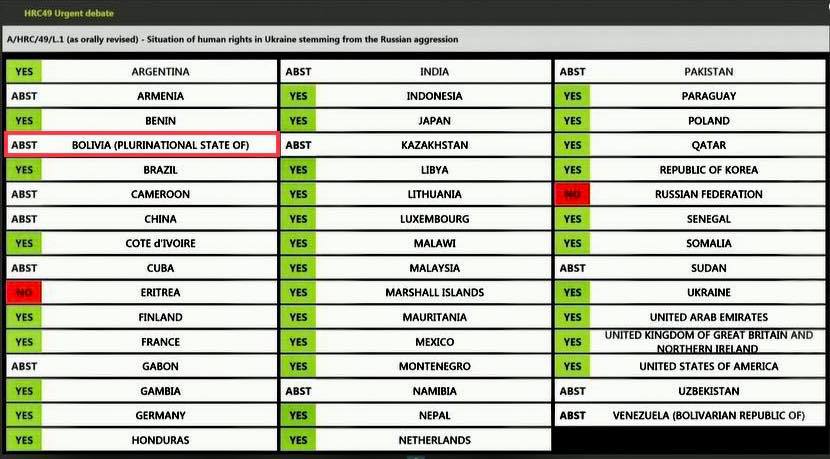 #Urgente: Bolivia se abstiene a investigar derechos humanos de Guerra Rusia 🇷🇺 – 🇺🇦 Ucrania