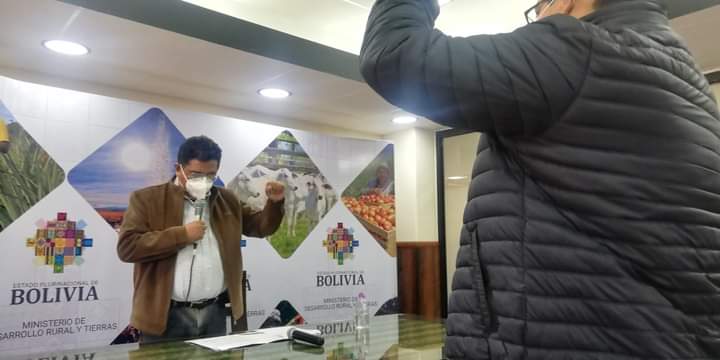 #ANF El ministro de Desarrollo Rural y Tierras, Remmy Gonzáles, posesionó hoy a Javier Ernesto Suárez Hurtado como nuevo director general ejecutivo del @SenasagBolivia. https://t.co/Mft4DiSS7v