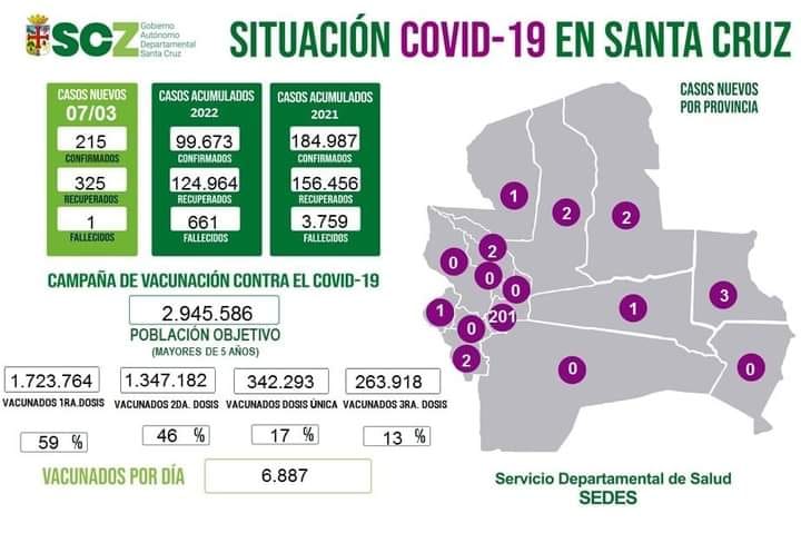#SantaCruz registró hoy 215 nuevos contagios y 1 fallecido