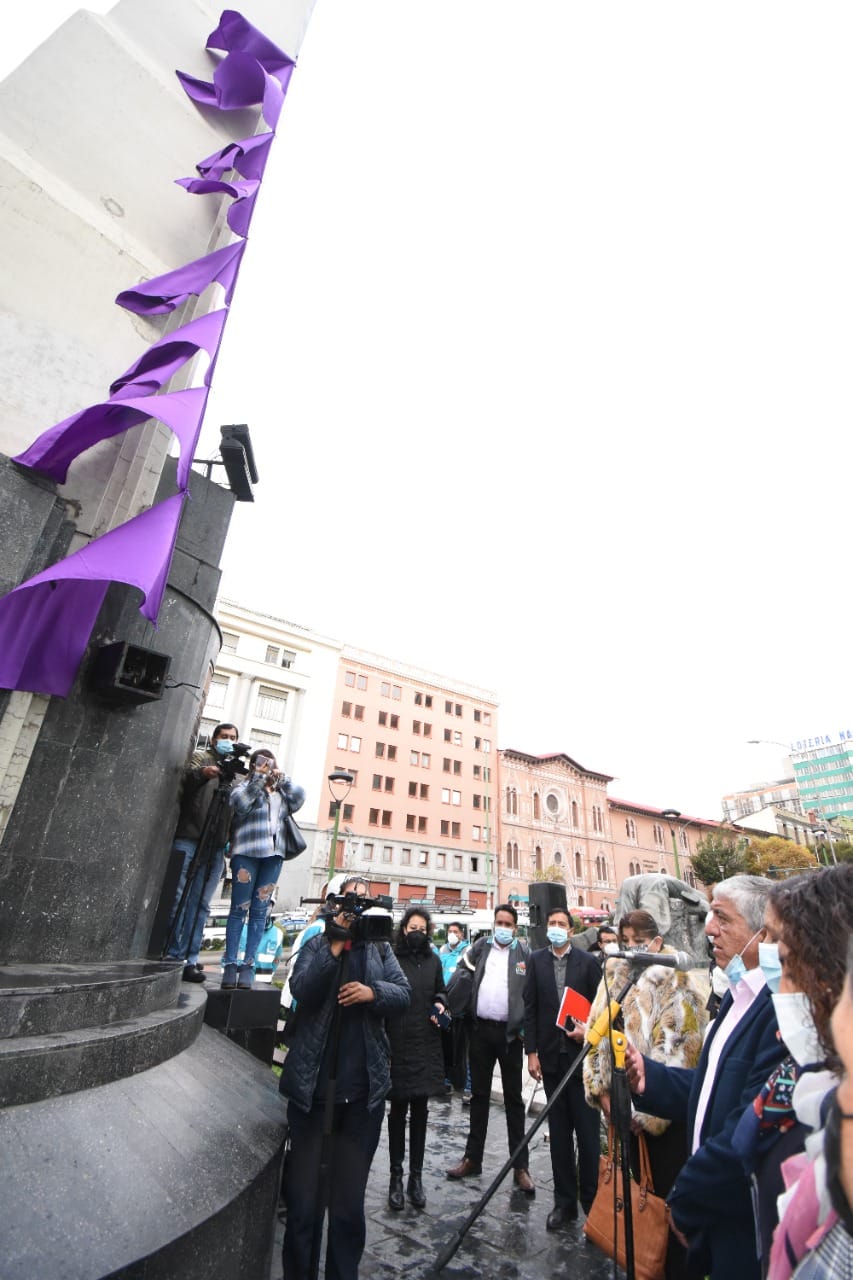 Del 1 al 8 de marzo de este año, siete mujeres fueron asesinadas por sus parejas en la ciudad de La Paz. El alcalde Iván Arias en memoria de las víctimas colocó siete banderas en la plaza del Obelisco. Agregó que pondrán una bandera como homenaje a la mujer que sea victimada.