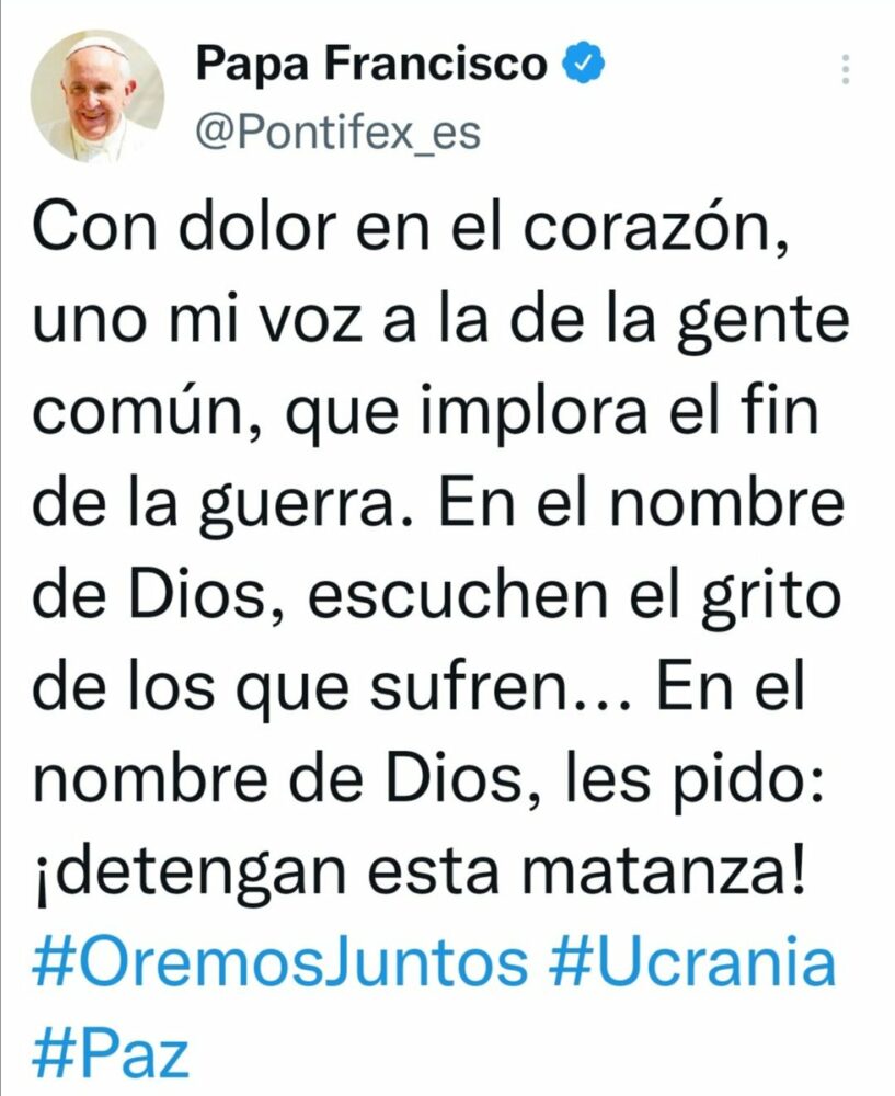 #ANF El papa Francisco se suma a la gente que implora el fin de la #Guerra. «En el nombre de Dios, les pido: ¡detengan esta matanza! afirmó. https://t.co/Y7slZPjqlM
