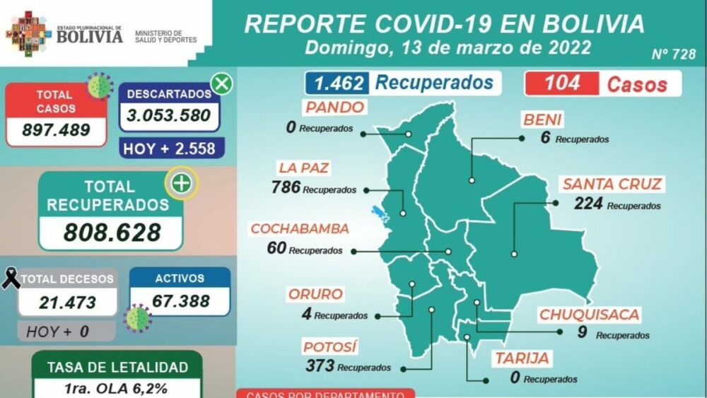 #ANF El @SaludDeportesBo reportó 104 casos de #Covid_19 y ningún fallecido. pic.twitter.com/dtL8lUhCaX