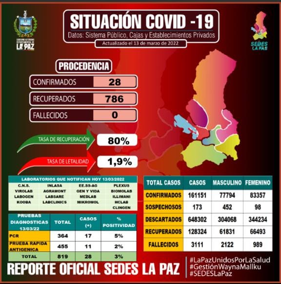 El Servicio Departamental de Salud de La Paz reporta para este lunes ocho n…