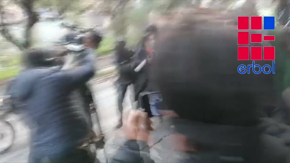 La Policía capturó a al menos dos maestros en medio del conflicto en la avenida Arce. Fueron liberados posteriormente. El magisterio protesta en demanda de más ítems. pic.twitter.com/VtYSC4F0PM