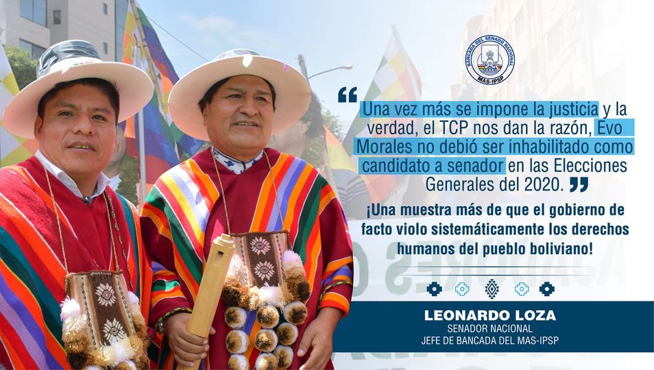 Senador Leonardo Loza: «Una vez más se impone la justicia y la verdad, el TCP nos dan la razón, Evo Morales no debió ser inhabilitado como candidato a senador en las Elecciones Generales del 2020.