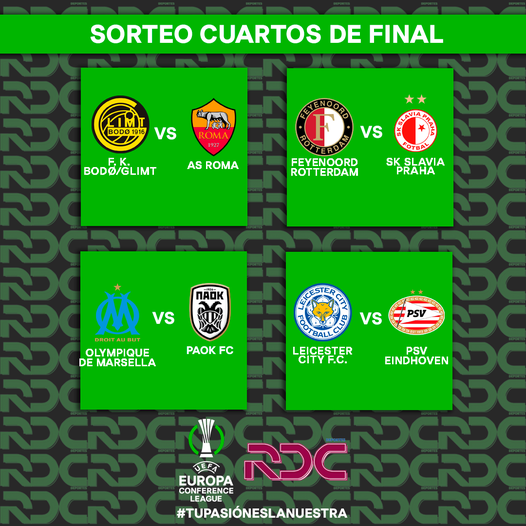A las 10:00 hrs se realizó el sorteo de los cuartos de final de la UEFA Europa Conference League, la ida se disputara el 7 de abril y la vuelta el 14 de abril.