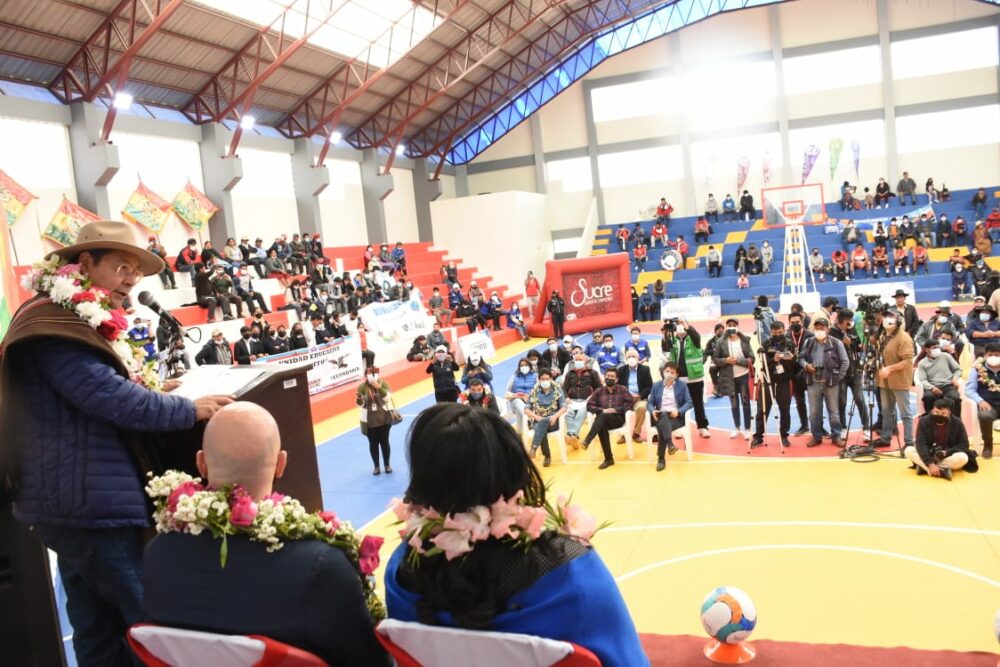 El presidente de Bolivia, Luis Arce Catacora, inauguró este sábado la moderna infraestructura en el Distrito 4 de la ciudad de Sucre en beneficio de la juventud y la niñez, con el objetivo de incentivar la práctica deportiva.