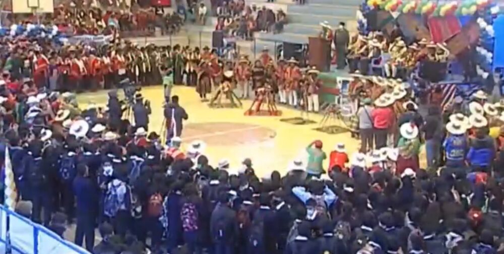 El presidente del Estado Plurinacional de Bolivia, Luis Arce Catacora, llegó este martes al municipio de Bolívar en el departamento de Cochabamba para inaugurar un coliseo durante la celebración del Jacha Tantachawi (Gran Encuentro) del Consejo Nacional de Ayllus y Markas del Qullasuyu (Conamaq).
