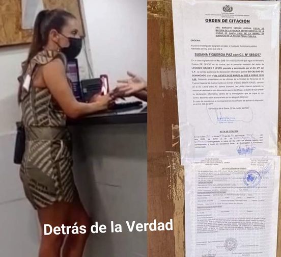 La Fiscalía citó en calidad de denunciada a Susana Figueroa Paz, quien deberá prestar su declaración informativa en instalaciones de la Felcc el próximo jueves 24 a horas 10:00, esto por los presuntos delitos de lesiones graves y leves.
