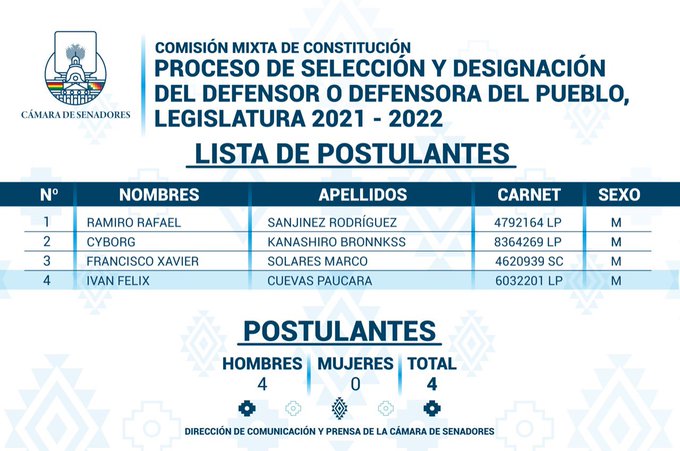 La senadora Gladys Alarcón, en contacto con radio FM La Paz, manifestó su esperanza de que se sigan registrando más candidatos y candidatas a este concurso público.