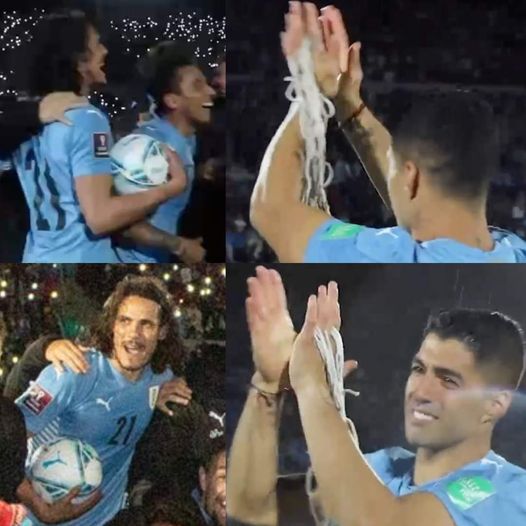 LEYENDAS🔥🇺🇾 Suárez se llevó parte de la red, mientras que Cavani se quedó con el balón.