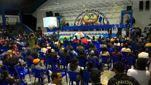 Presentación del libro “EVO OPERACIÓN RESCATE” evento que se realiza en la sede de la Coordinadora de las seis Federaciones del Trópico de Cochabamba