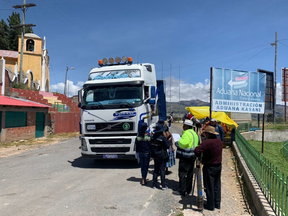 Estos camiones, denominados “lastres”, al igual que otros motorizados, se encontraban en el Centro Bilateral de Atención en Frontera (CEBAF) del Perú, aguardando se suspenda el bloqueo de caminos que se realiza en esa localidad por comunarios que exigen la construcción de la doble vía Río Seco – Desaguadero; sin embargo, al enterarse de la habilitación de la ruta alternativa de Kasani, se trasladaron al lugar, detalla un reporte de la ANB.