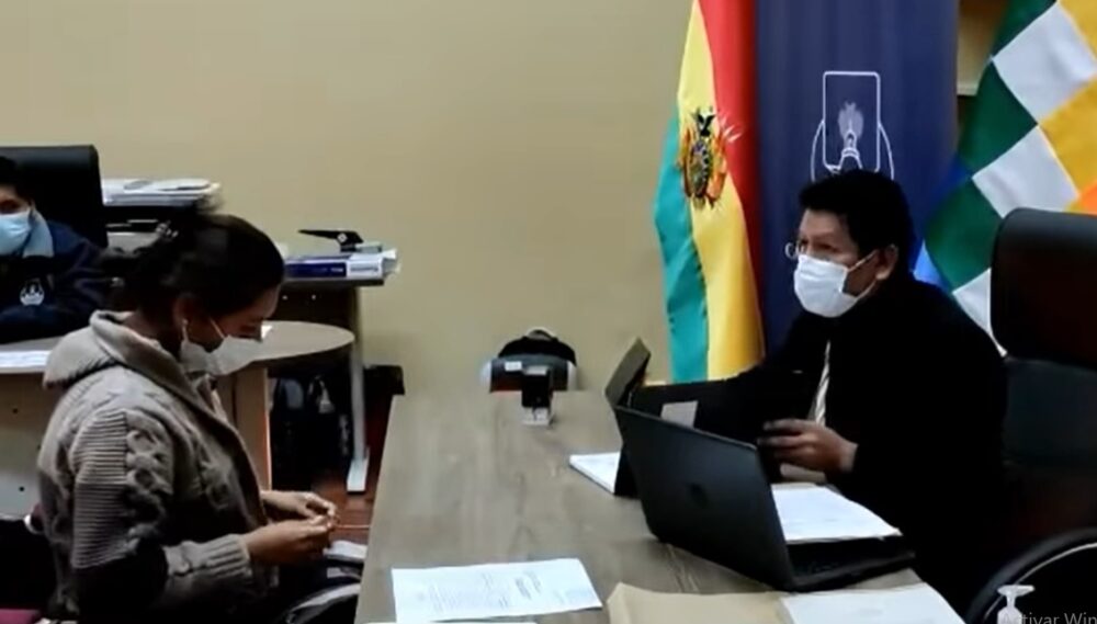 La joven aspirante, oriunda de Cochabamba y de profesión abogada, presentó sus correspondientes documentos en la oficina de la Comisión Mixta de Constitución.