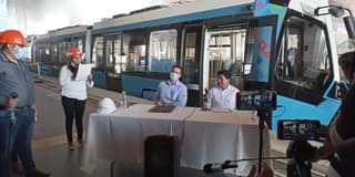El Ministro de Obras Públicas, Servicios y Vivienda, Ing. Edgar Montaño, y el Coordinador General de la Unidad Técnica de Ferrocarriles, Ing. Augusto Chassagnez, realizan la Firma de convenio para para la ejecución del proyecto “Tren Metropolitano de Cochabamba».