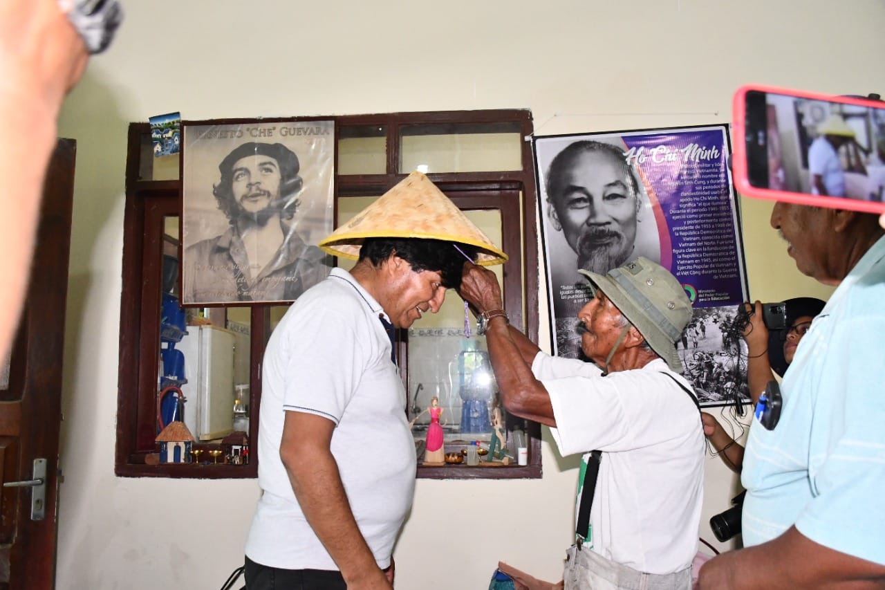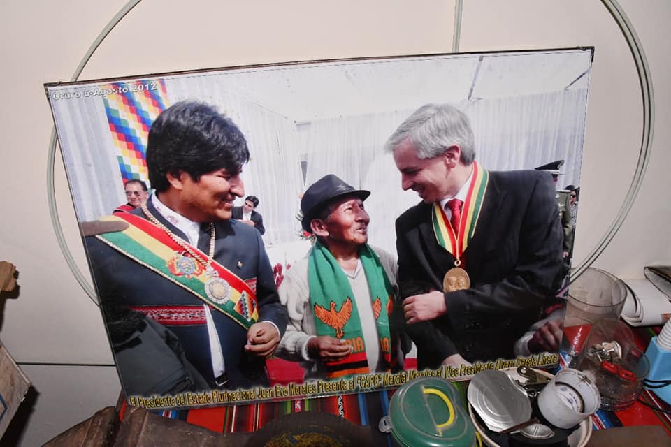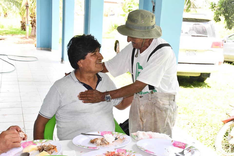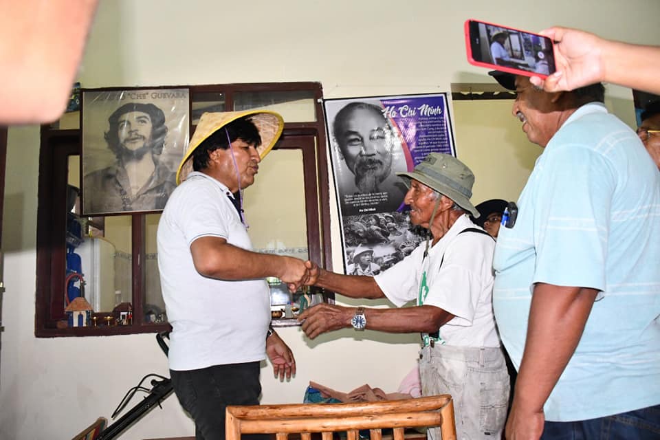 Evo Morales: «Muy emocionados con nuestra visita, en Yapacaní, a nuestro estimado #tío Marcial Morales, líder histórico de las luchas en tiempos de las dictaduras en #Bolivia en las décadas del ’60 y ’70.