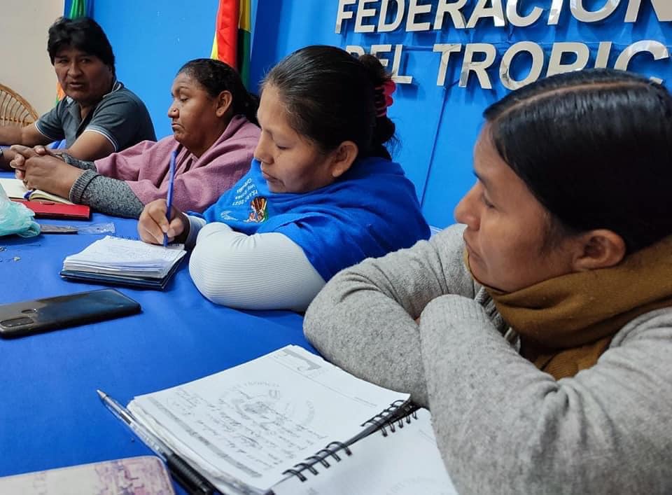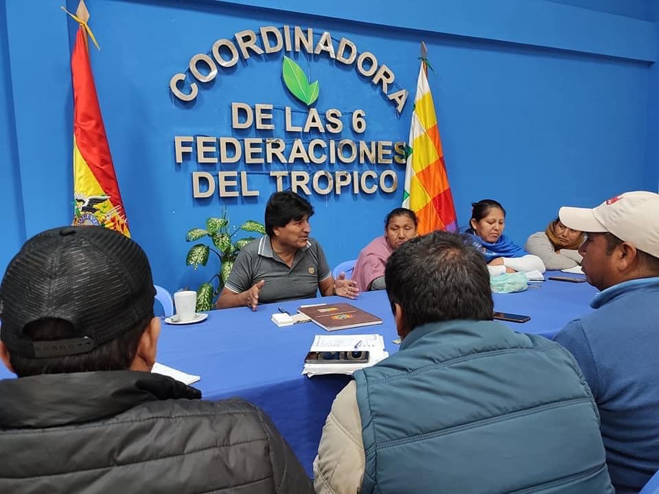 “Estamos reunidos con los ejecutivos y ejecutivas en la Coordinadora de las Seis Federaciones del Trópico de Cochabamba, es importante estar siempre en permanente coordinación”, escribió en su cuenta de facebook, el ex presidente Evo Morales.