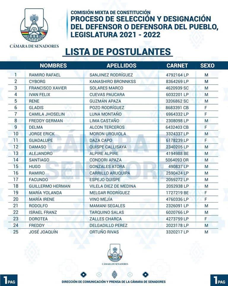 Hoy es el penúltimo día de inscripciones y ya hay 65 postulantes al cargo de #DefensorDelPueblo, de los cuales 48 son hombre y 17 mujeres.