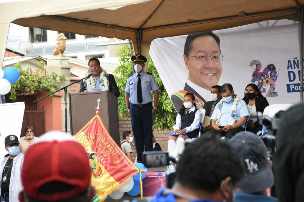 El presidente Luis Arce inauguró este jueves la nueva infraestructura de la unidad educativa Juan XXIII, ubicada en el Distrito 4 de la ciudad de Cochabamba. La obra demandó una inversión de más de Bs 3 millones.