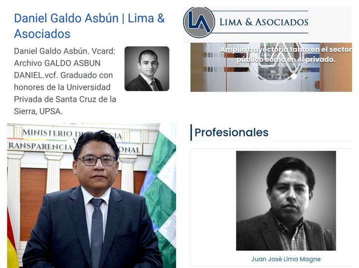 Iván Lima actual ministro de Justicia no es parte activa en estos momentos del consorcio jurídico Lima & Asociados por su condición de autoridad, pero hasta antes de asumir el cargo como autoridad de gobierno era parte de este consorcio de abogados.