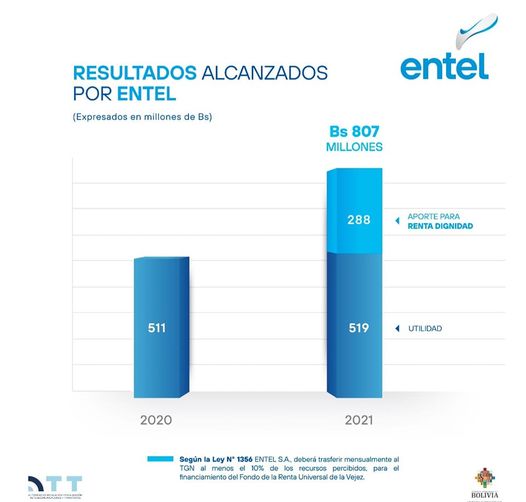 De esta manera ENTEL S.A., contribuye decisivamente a la reactivación económica que encara el gobierno del presidente Luis Arce Catacora y, adicionalmente, impacta positivamente en la economía de las personas adultas mayores del Estado Plurinacional de Bolivia.