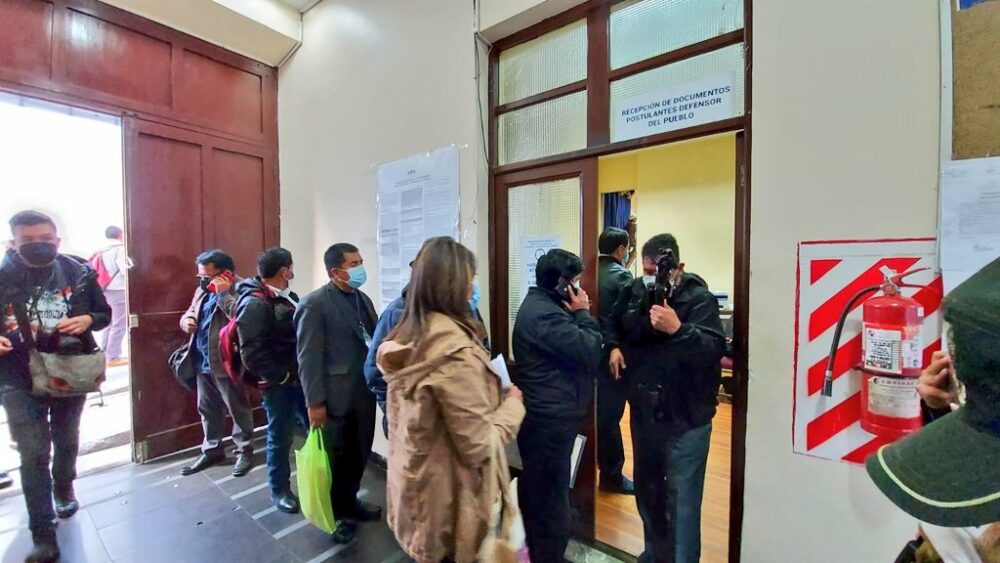🔵 #Ultimo | #Politica Este es el panorama en la oficina que ocupa la Comisión Mixta de Constitución para la inscripción de postulantes a Defensor o Defensora del Pueblo. Se registra una fila de candidatos en esta jornada que cierran las postulaciones. (Fotos: #ANF) https://t.co/FjPp9owqRI