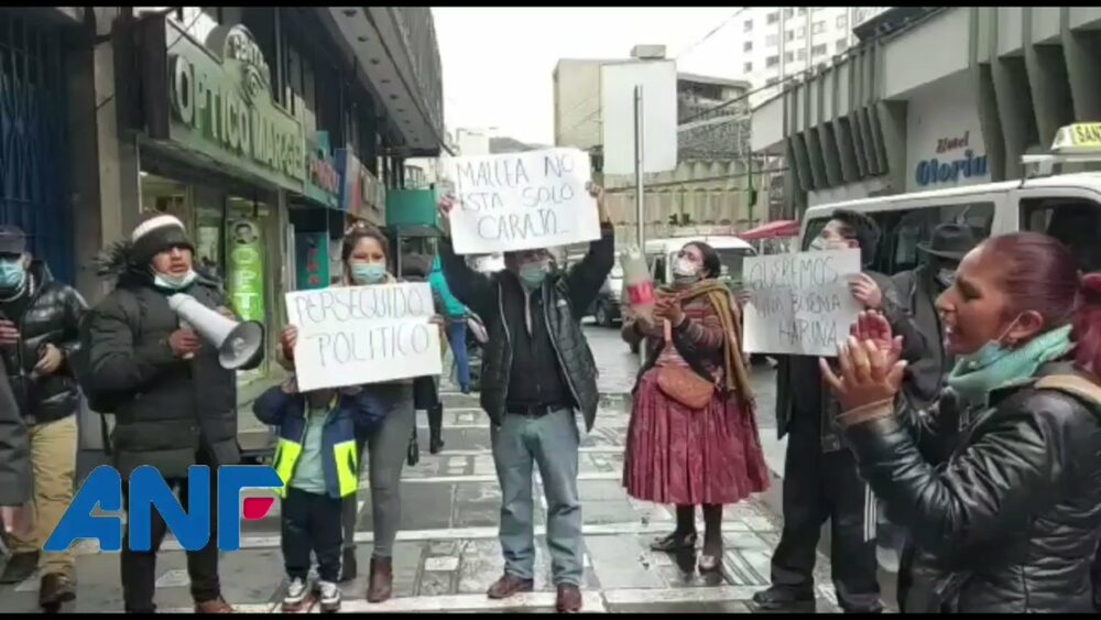 🔵 #Ultimo | Un grupo de personas expresa su apoyo al dirigente de la Federación de Panificadores Artesanos de #LaPaz, Dandy Mallea, en puertas de la Fiscalía. El representante se encuentra en el lugar declarando por una denuncia de agio presentada por el gerente de Emapa. pic.twitter.com/a7KFUQNQMj