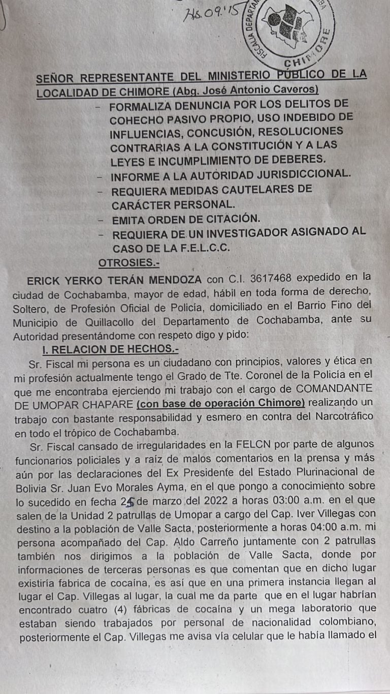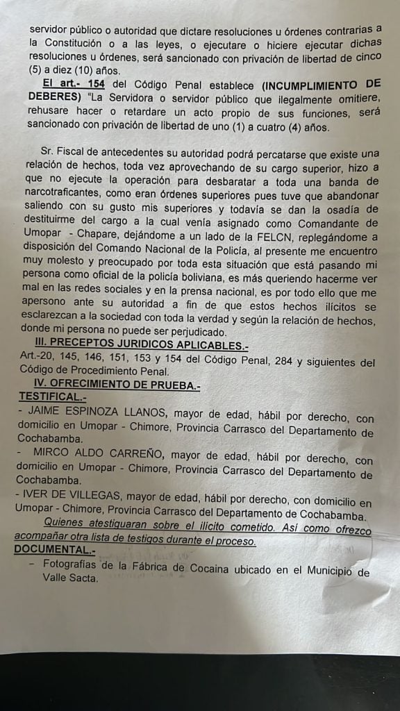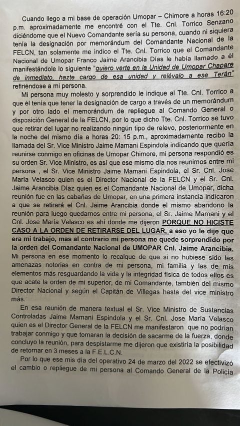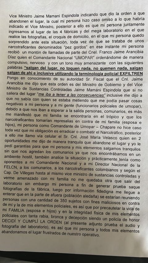 Exdirector de Umopar, Erik Y. T., denunció a quienes le ordenaron parar operativo en Sacta, en el Trópico