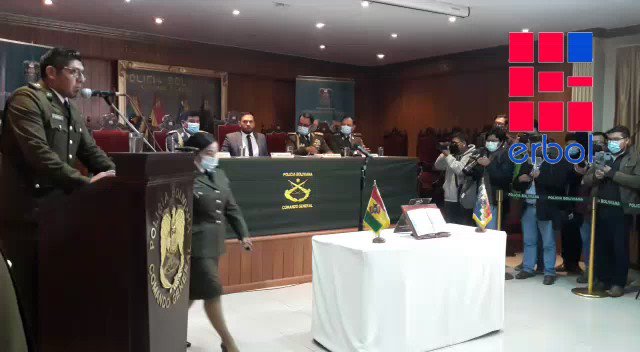 #LaPaz | De esta manera fue posesionado el coronel Gregorio Illanes como el nuevo director general de la FELCN, en reemplazo del coronel José María Velasco. pic.twitter.com/BmYvThkRV6