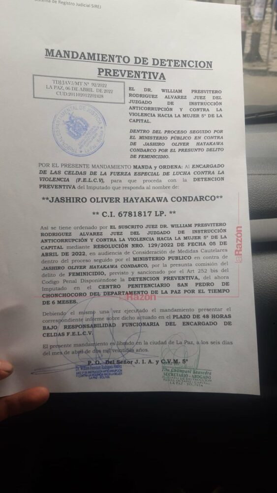 🔵 #ANF | #Seguridad Jashiro Hayakawa, “autor confeso” del feminicidio de Wilma Fernández, fue trasladado al penal de Chonchocoro para cumplir seis meses de detención preventiva. (Fotos: @LaRazon_Bolivia) pic.twitter.com/nCFdtMwxVR