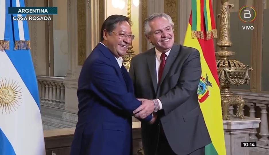 El Pdte. Luis Arce se reúne con el Pdte. De Argentina Alberto Fernández, en la reunión tratarán diferentes temas, entre ellos exportaciones de gas y acuerdos de venta de gas a ese país.