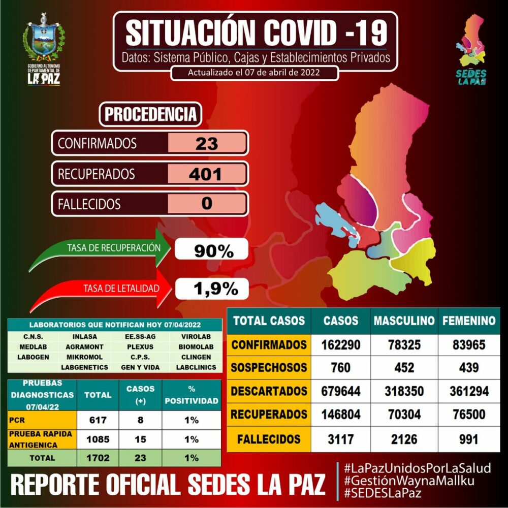 đ” #ANF | #Salud El departamento de #LaPaz suma 23 nuevos contagios de #COVID19 y 401 recuperados, segĂșn el reporte del Sedes. https://t.co/pFaHdLr9it