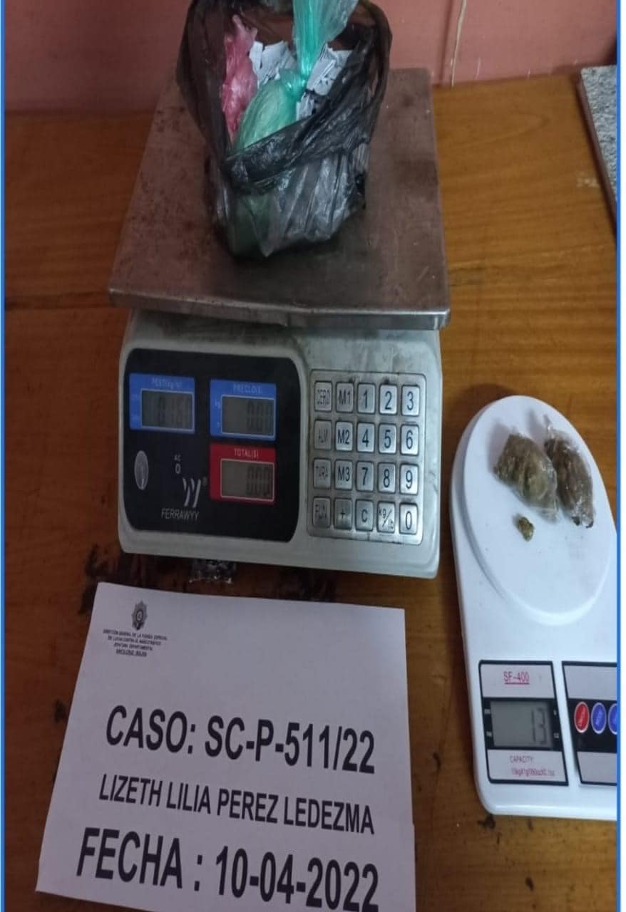 Informamos al pueblo boliviano que hoy con la aprehensión de Lizeth Lilia Pérez en posesión de sustancias controladas, hermana de Paola Pérez Ledezma, Reyna del microtráfico desarticulamos por completo la OrganizaciónCriminal «Pérez Ledezma».