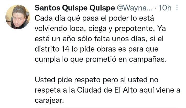 🔵 #ANF | La @DPBoliviaOf cuestionó al gobernador de #LaPaz por usar adjetivos en alusión a condiciones de discapacidad para descalificar a Eva Copa. «La discapacidad debe ser respetada y no implica una incapacidad para el pleno desarrollo de las personas», cita su comunicado. https://t.co/0TcsilkbcZ