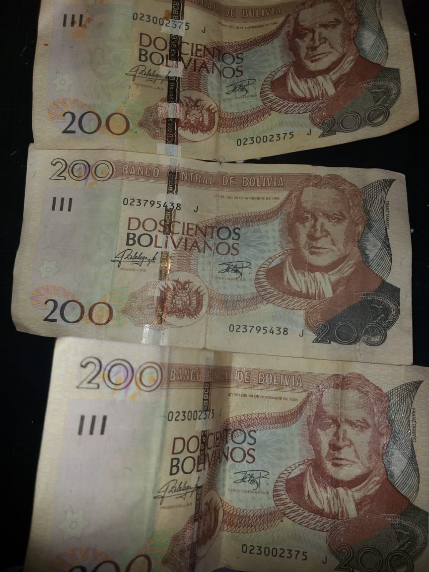 Los cuatro sujetos aparentemente de una familia, tenían unos 10 mil bolivianos en cortes de 200 bolivianos que pretendían engañar a la gente del lugar.