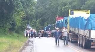 En la zona de Limoncito continúa el de bloqueo. Los pobladores exigen que la empresa Dracruz deje de explotar la piedra caliza y que abandonen la zona.