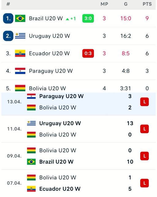 La selección boliviana femenina de fútbol Sub-20, terminó su participación en el #SudamericanoSub20, como última de su grupo. Y también en el ultimo lugar de la tabla general, por diferencia de goles.
