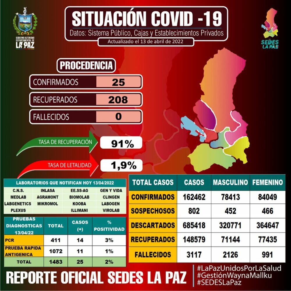 🔵#ANF | #Salud De acuerdo con el reporte del Servicio Departamental de Salud (Sedes) de #LaPaz, este miércoles se confirmó 25 nuevos contagios, de los cuales cinco corresponde a #ElAlto, 19 al municipio paceño y uno a áreas rurales. https://t.co/r7efpqCeO8