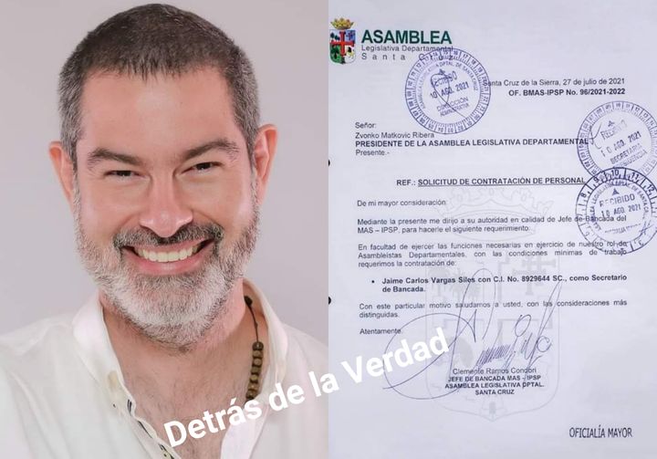 El Presidente de la Asamblea departamental de Santa Cruz, Zvonko Matkovic a través de una publicación manifestó no haber conocido al ex funcionario y mucho menos haber ordenado su contratación y este llegó a la bancada del Mas como secretario a solicitud del asambleista Clemente Ramos.