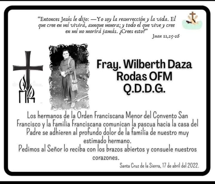 La iglesia San Francisco, donde perdió la vida el fray Wilberth Daza, se encuentra cerrada y con un comunicado que dice: «por el luto que nos adhiere comunicamos a los feligreses la suspensión de las eucaristías de hoy domingo 17 de abril».