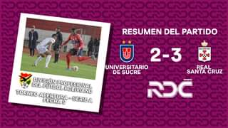 Mira los goles de Dorny Romero 40′, Matheo Zoch 53′ y 81′, Carlos Ardián 90′ y Vladimir Castellón 90+7′ para la victoria de Club Real Santa Cruz – Oficial sobre Club Deportivo Universitario.