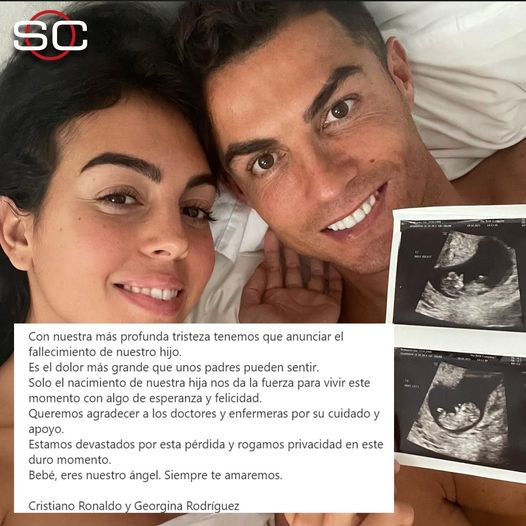 Cristiano Ronaldo acaba de confirmar el fallecimiento de uno de los mellizos que Georgina Rodríguez ha dado a luz