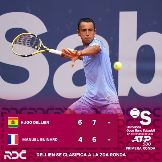 En su debut en el cuadro principal del Barcelona Open BancSabadell – Trofeo Conde de Godo el boliviano Hugo Dellien solo necesito de dos sets para vencer al francés Manuel Guinard, el siguiente rival del nacional es el americano Frances Tiafoe actualmente el lugar 29 del ranking ATP.