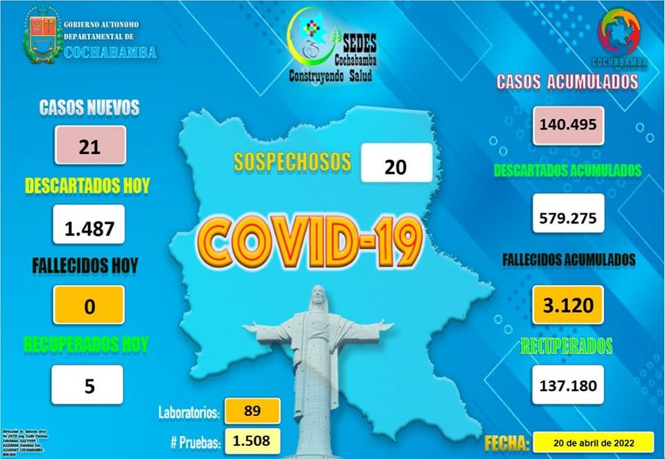 🔵 #ANF | #Salud #Cochabamba suma 21 nuevos contagios y cinco recuperados. https://t.co/6VOuImWRYY