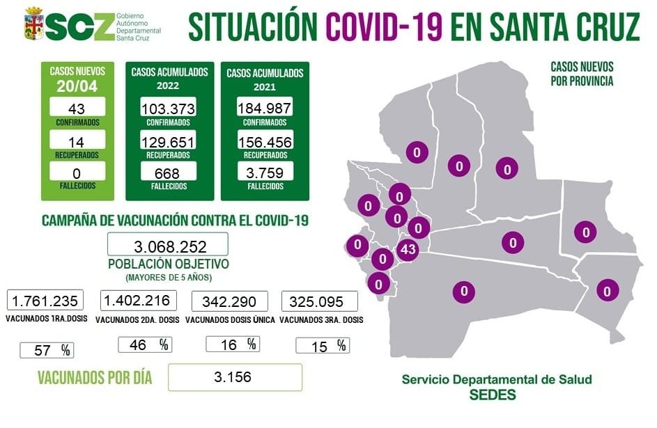 🔵 #ANF | #Salud El Sedes de #SantaCruz reportó este miércoles 43 nuevos contagios y 14 recuperados. https://t.co/chtlx0B6Xs