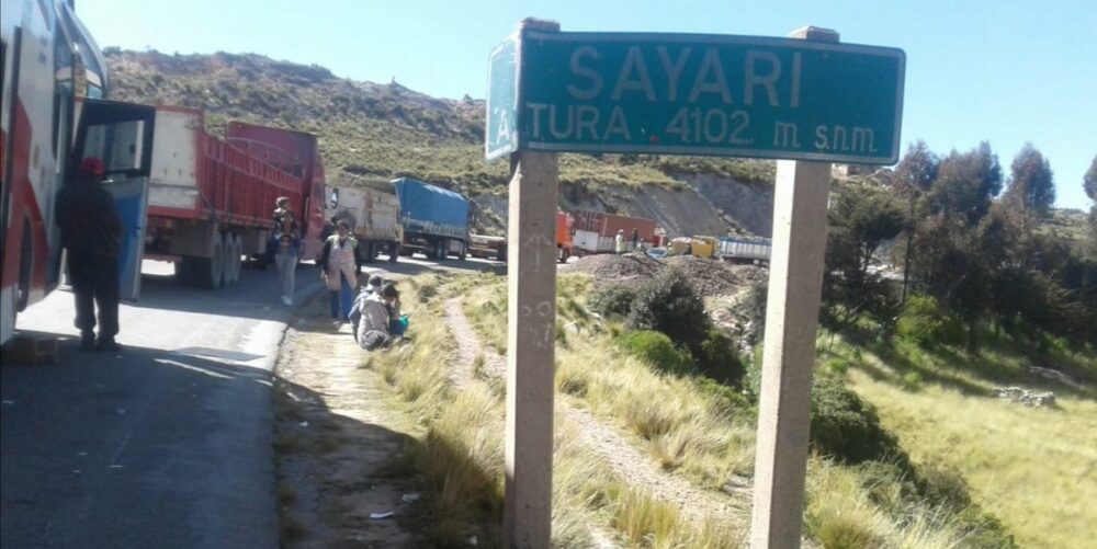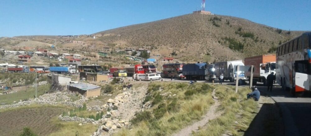 🔵 #Ultimo | Este es el panorama en la carretera Oruro-Cochabamba, sector de Sayari. Mineros de Kami bloquean la vía en demanda de mejora de los caminos y otros proyectos. (Fotos Los Tiempos) https://t.co/04PT9u3EEN