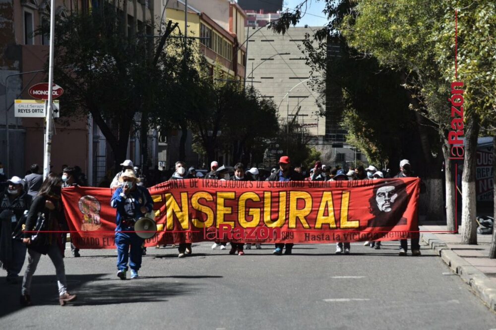 🔵 #ANF | La Federación Nacional de Trabajadores de Seguridad Social (Fensegural) marcha hoy en el centro de #LaPaz en demanda de la destitución del gerente general de la CNS, Herland Tejerina. Los trabajadores de esa institución cumplen un paro de 72 horas. (Foto: La Razón) https://t.co/HVyu6D1wmn